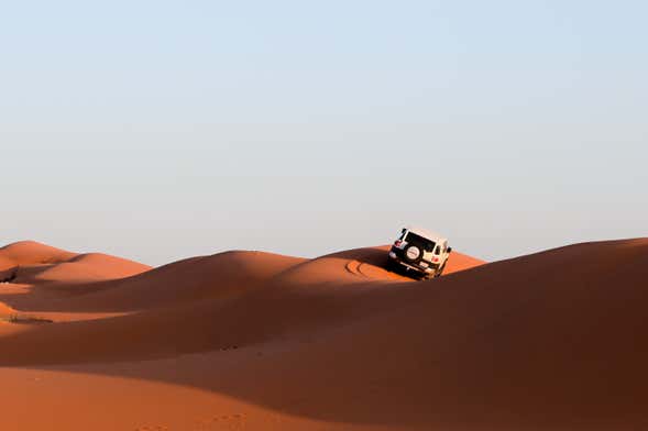 After picking you up from your hotel at the indicated time, we'll make our way in a 4x4 to the Abu Dhabi desert. On board this 4x4 Land Cruiser we'll leave the luxury and grandeur of the capital behind and dive into its tranquil desert.
