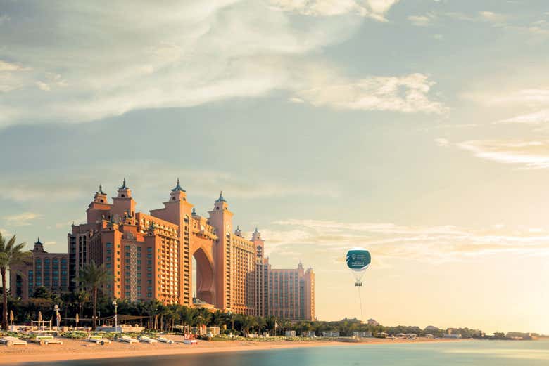 During your stay in Dubai, don't miss your chance to enjoy a tethered hot air balloon ride with the Dubai Balloon! Anchored to the ground close to the iconic Atlantis Hotel, this experience offers a breathtaking view of Dubai and its stunning skyline.