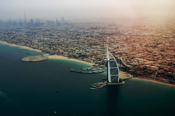 Having enjoyed the same itinerary as the 60-minute tour we'll continue along the Persian Gulf waters, alongside the Palm Jumeirah. This artificial island in the shape of a palm tree is full of exclusive tourist resorts. These hotels make up a special monument, proof of which comes in the famous Burj Al Arab, whose silhouette in the shape of a sail can also be seen from the speedboat.