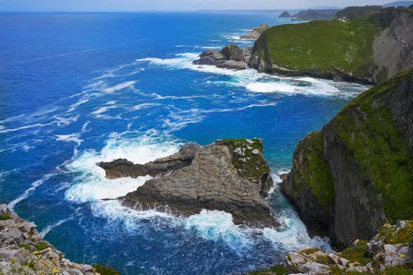 We'll skirt the lighthouse and, after seeing other viewpoints in the area, we'll go to Vallina beach. This area is very reminiscent of the landscapes found in the north of the British Isles. We'll tell you about their similarities and differences and, if the tide is low, we'll go to a cove where we'll see a waterfall that falls directly into the sea!