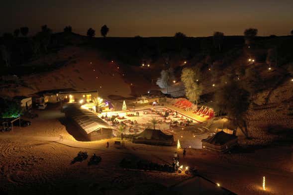 With the sun still high in the sky, we'll admire the desert landscapes on the way to our destination. Once there, we'll be welcomed to the camp with Arabic coffee and dates. Afterwards, you'll have time to explore the camp and try out some of the activities on offer.