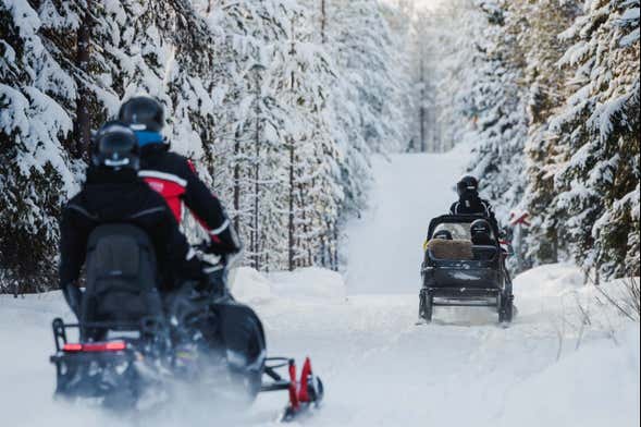 After being picked up from your selected pickup point at the indicated time, we'll head to a Lapland forest. Here, you'll be given thermal equipment to protect yourself from the cold and receive the safety instructions to drive the snowmobiles. Ready for this adventure? Let's go!