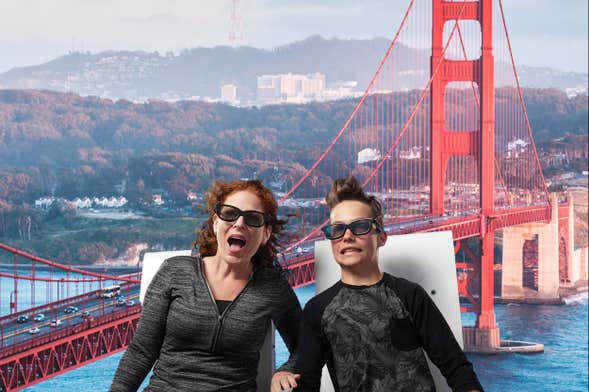 How? Sat in your seats, you'll "take off" as you watch a huge surround sound screen. Your seats will move and you'll feel the wind in your hair as you fly over the incredible Golden Gate, Muir Woods, Chinatown and many other iconic sights in San Francisco.