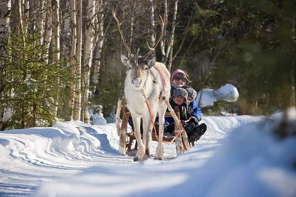 Upon arrival, we'll introduce you to the friendly reindeer that will accompany us during our sleigh ride through the snowy forests of Sirkka. Then, we'll get into the sleigh and go on a 3-kilometer ride to discover the landscape in a fun and unique way - you'll feel like Santa Claus himself!