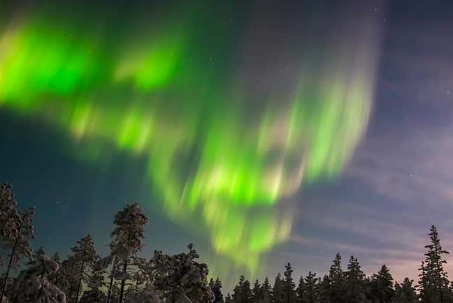 After we get on our snowmobiles, we'll drive through the forests surrounding Ylläsjärvi to the most ideal spots to catch this colorful display. As we explore the snowy landscapes of Finland, we'll make our way to the river bank, where we'll find some traditional Lappish dwellings.