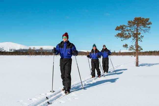 At 10 am, we'll pick you up from your hotel in Ylläsjärvi and head to Pallas-Yllästunturi National Park. Are you ready to explore snowy forests like real skiers? Let's get started!