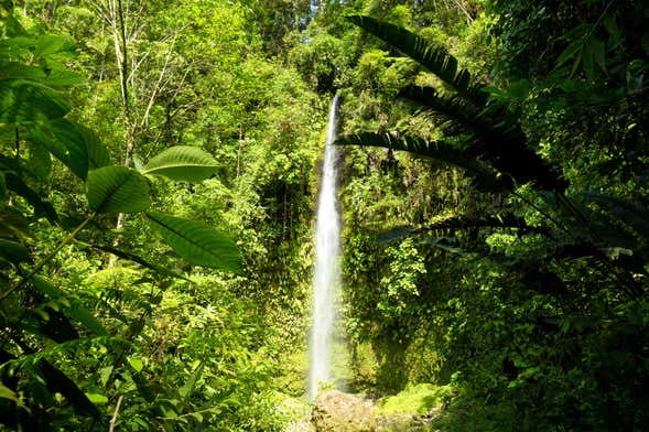 Continuaremos la ruta de senderismo hasta la cascada Hola Vida, rodeada de bosque tropical. Además, a lo largo de la caminata puede que nos topemos con pájaros carpinteros, ranas hylas o serpientes como la chonta y la equis. Cuando lleguemos a la catarata, podréis disfrutar de un refrescante baño en sus aguas cristalinas.