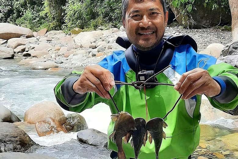 A la hora indicada os recogeremos en vuestro hotel de Baños para poner rumbo hacia la Reserva del Río Zuñac. Una vez allí, os proporcionaremos el equipo necesario para adentrarnos caminando en el río y buscar los famosos carachamas y bagres andinos.