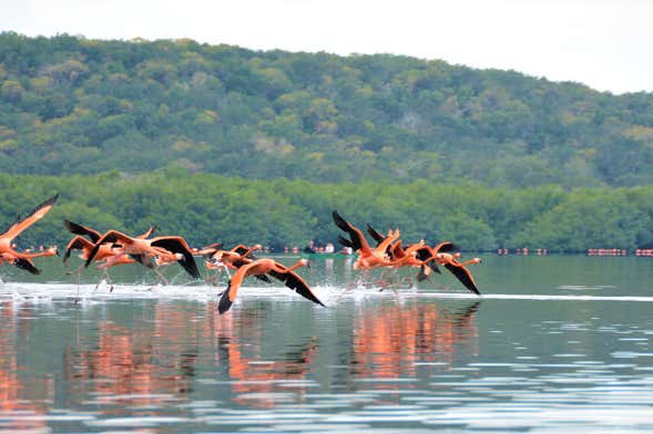 Recorreremos parte de un área protegida que incluye los Laberintos de los Naturales, Cayo Ocampo y otros cayos más pequeños en el interior de la bahía. A bordo de la barca veremos que esta zona acoge una gran diversidad biológica, donde sus colonias de flamencos rosados dan color a toda la laguna.