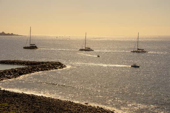 Tendréis tiempo para fondear en varias calas del sur de Tenerife. Arena dorada y una mansión histórica os esperan si vais a la playa del Duque. Si optáis por el color más autóctono, las bahías de arena negra son un imprescindible en la costa de Santiago del Teide. Además, tenéis a vuestra disposición un equipo de snorkel con el que podréis descubrir la fauna y flora que se esconde bajo el agua.