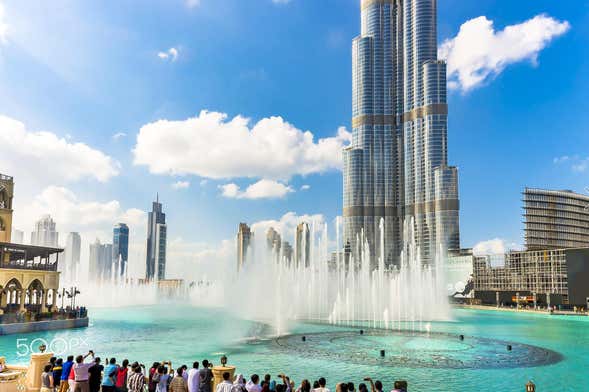 Desde esta pasarela, obtendréis la mejor vista del espectáculo de luz y sonido de la Fuente de Dubái, un show que combina 6600 focos, 50 proyectores de color para iluminar el agua, un baile de agua con 1000 expresiones diferentes y una exquisita selección de melodías.