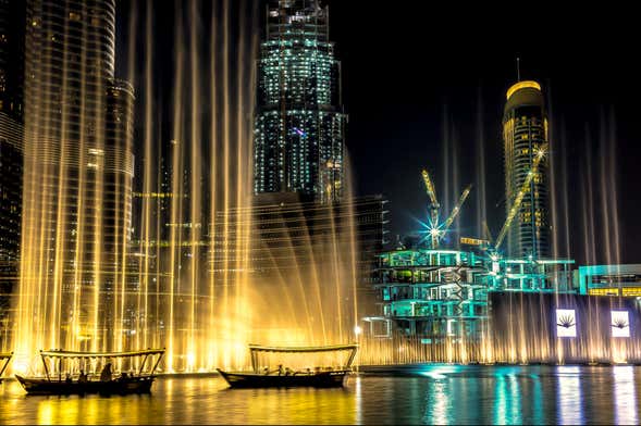 En este paseo en barco de 30 minutos os llevaremos a surcar las aguas del lago Burj para contemplar su magia de cerca. Desde vuestros asientos, obtendréis las mejores vistas del espectáculo de luz y sonido de la Fuente de Dubái. Este show combina un total de 6600 focos y 50 proyectores de color para iluminar el agua.