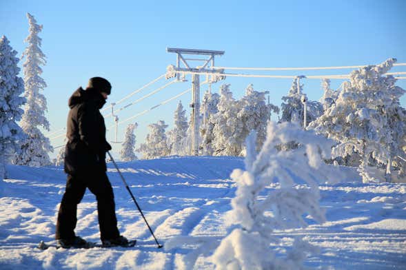 Nos pondremos los esquís, cogeremos los bastones y nos adentraremos en la estampa invernal del Parque Nacional Pyhä-Luosto. Cruzaremos durante dos horas los blancos parajes naturales mientras disfrutamos de la paz y la tranquilidad que desprende este lugar.