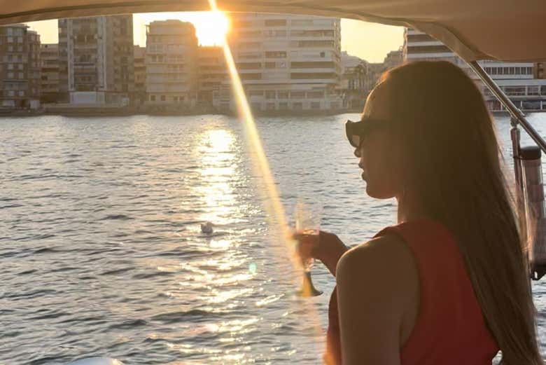 Mientras contempláis todos estos paisajes, os serviremos una copa de cava. ¡Podréis brindar frente a la bahía de Torrevieja! Será uno de los momentos más especiales de este paseo en barco al atardecer, que sin duda quedará grabado para siempre en vuestra memoria.