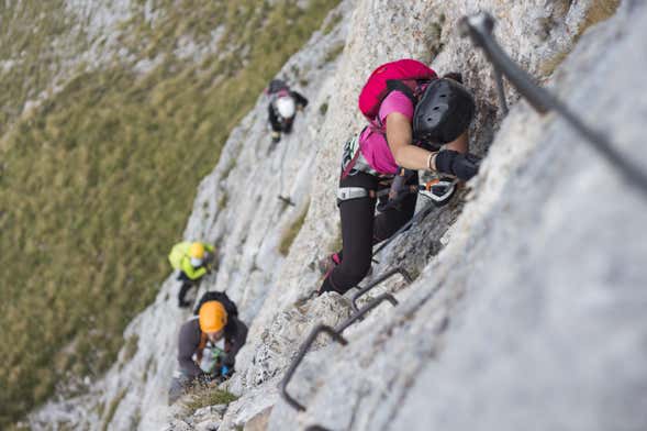 Après avoir ajusté les harnais, les casques et le reste du matériel de sécurité, vous assisterez à une brève introduction technique sur l'itinéraire. Une fois que vous serez prêt, vous commencerez à avancer le long de la via ferrata. Que vous ayez déjà de l'expérience dans ce domaine ou non, vous vivrez une expérience unique.