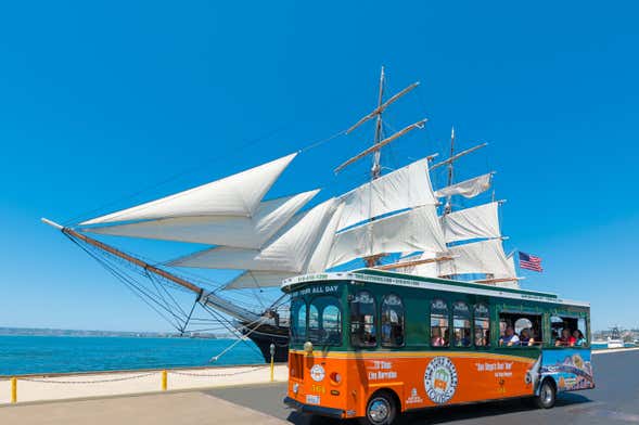 Durante l'intero percorso sul filobus turistico di San Diego potrete salire e scendere a una qualsiasi delle sue 11 fermate e scattare tutte le fotografie che volete. Inoltre, l'autista vi racconterà alcune delle curiosità sui luoghi di San Diego che attraverserete.