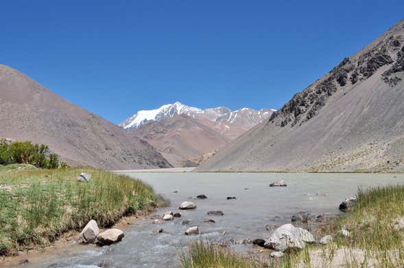 Às 10:00 horas, partiremos em um jipe 4x4 do seu hotel de Barreal. Iremos rumo ao sudoeste, em direção às paisagens andinas que formam a fronteira natural entre a Argentina e o Chile.