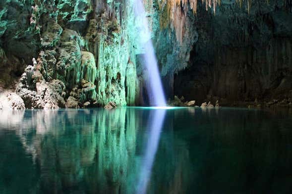 Durante a descida, você já poderá começar a avistar essa paisagem incrível em que estamos prestes a entrar. No final da descida de 72 metros, entraremos em um bote inflável para fazer um passeio pelo seu interior. Durante o trajeto, também iremos lhe contar várias curiosidades sobre as formações rochosas do seu interior. Um passeio único!