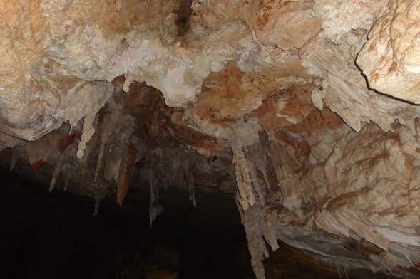 A trilha nos levará até a entrada da grutas e, quando estivermos lá, entraremos nessas formações para começar a nossa visita guiada. Já no interior, teremos a oportunidade de caminhar perto das estalactites, estalagmites e da rocha tipo travertino. Se tivermos sorte, também veremos a coruja suindara que vive dentro da caverna. Uma experiência única!