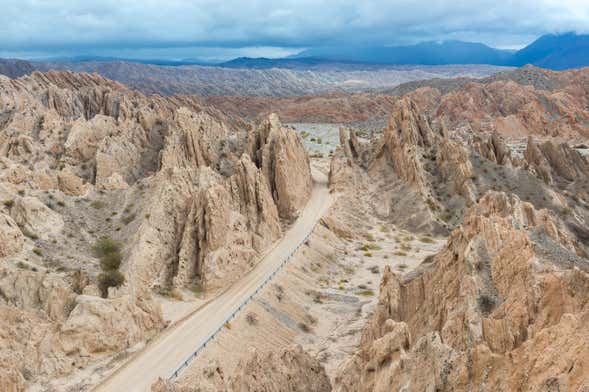A excursão nos levará pela famosa Rota Nacional 40. Você sabia que esta extensa estrada atravessa a Argentina de norte a sul? No caminho, vamos parar em alguns mirantes que nos permitirão contemplar as curiosas formações rochosas da Quebrada de las Flechas a partir de diferentes perspectivas.