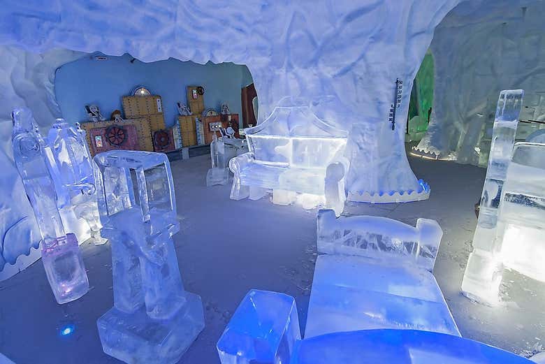 Ao entrar, você receberá o agasalho térmico adequado, incluindo capuz e luvas, para que a visita se torne mais agradável. Uma vez equipado, lá dentro, você encontrará um mundo feito totalmente de gelo: sofás, mesas, camas... e até um trenó! Bem-vindo ao Mundo Gelado do Capitão!