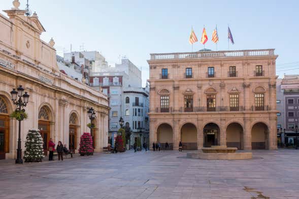 Em primeiro lugar, contemplaremos as fachadas da Prefeitura e da Co-catedral de Santa María. Como veremos, neste templo de origem medieval as características do gótico valenciano se misturam com outros estilos como o neogótico. A propósito, você sabe a diferença entre uma catedral e uma co-catedral? Nós vamos descobrir!