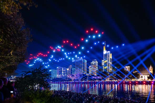 Depois de receber sua pulseira VIP, começaremos a caminhar ao longo da margem do rio Meno até a zona mais animada de Frankfurt, Alt-Sachsenhausen. Que comece a diversão!