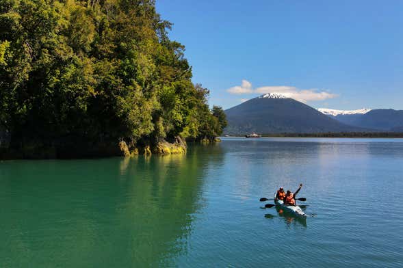 Depois de uma breve introdução, vamos nos equipar com todo o material necessário e começaremos uma inesquecível travessia de caiaque. Nessa rota de 7 quilômetros e dificuldade médica, desfrutaremos das espetaculares paisagens da Patagônia chilena, que se caracterizam por sua grande riqueza ambiental.