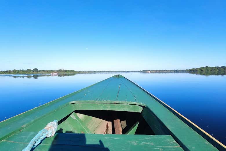 Antes do nascer do sol, seguiremos em direção às margens do rio Negro para subir em nossas canoas e zarpar em direção ao ponto onde ancoraremos para assistir ao nascer do sol. O momento perfeito para meditar!