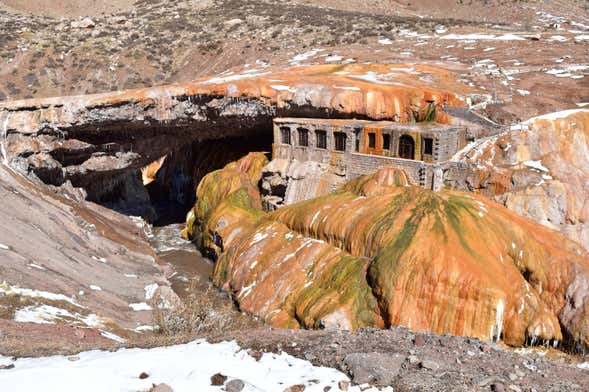 Continuaremos a rota até a Ponte do Inca, uma passarela natural sobre o rio Las Cuevas formada na rocha. Muito perto de lá, encontraremos um mirante de onde teremos vistas impressionantes do Aconcagua, o maior pico da América, com mais de 6.900 metros de altitude.