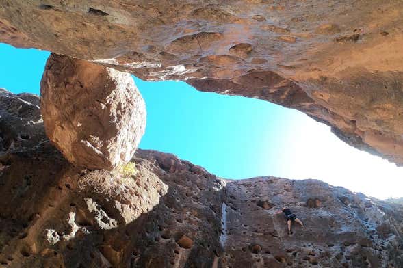 Quando chegarmos ao desfiladeiro, colocaremos o capacete, o arnês e o resto do material de escalada. Preparados para subir por essa íngreme garganta? A atividade será supervisada a todo momento por um monitor especializado, então você não terá que se preocupar com nada além de desfrutar da experiência!