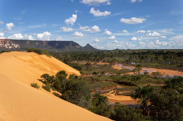 Continuaremos explorando o Parque Estadual do Jalapão. Ao chegar, iremos à Prainha do Rio Novo, onde você poderá aproveitar para dar outro mergulho. Recarregaremos as energias com um delicioso almoço e, antes de finalizar a visita ao parque, desfrutaremos de uma passeio de barco pelo rio ao entardecer. Um autêntico espetáculo natural. Depois, iremos a Mateiros para jantar e passar a noite.
