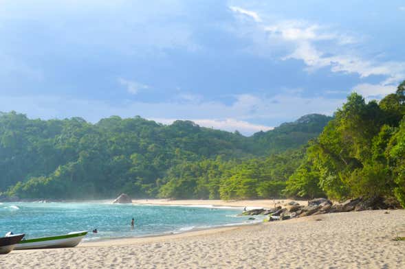 Finalmente, chegaremos à praia do Sono, repleta de amendoeiras nativas e casas e barcos de pescadores. Você sabia que os habitantes dessa região costeira são chamados de caiçaras?
