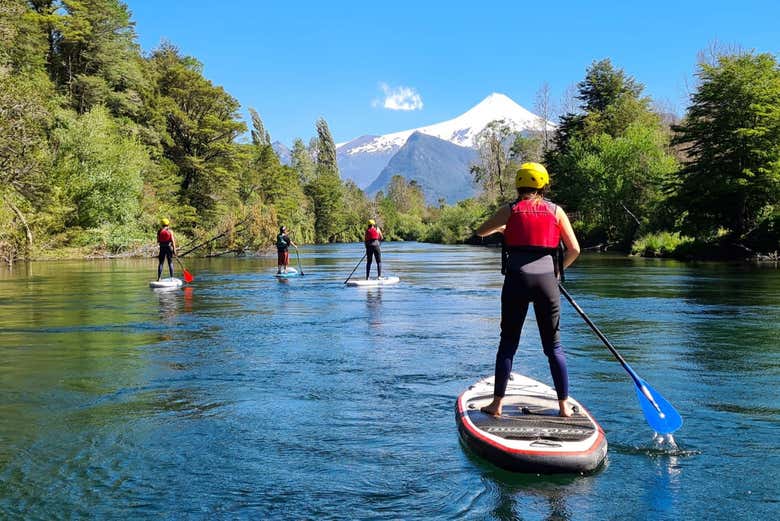 Após um percurso de 23 quilômetros de estrada, chegaremos ao Lago Caburgua. Já na margem, colocaremos o equipamento e pegaremos as pranchas de paddle surf. Antes de começar a remar, daremos instruções sobre a atividade e falaremos sobre o ambiente natural em que nos encontramos.