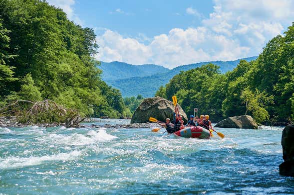 Quando estivermos lá, explicaremos as medidas de segurança e começaremos a colocar o capacete, o colete salva-vidas e outros equipamentos de rafting. Todos para o bote, a aventura vai começar! Garantimos que será uma experiência emocionante!