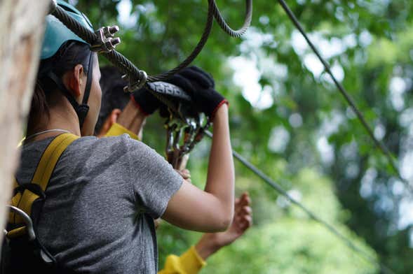 Uma vez neste parque de aventura, colocaremos os capacetes e todo o equipamento necessário e realizaremos a primeira atividade do dia: uma trilha de 2 quilômetros para descobrir a flora nativa.