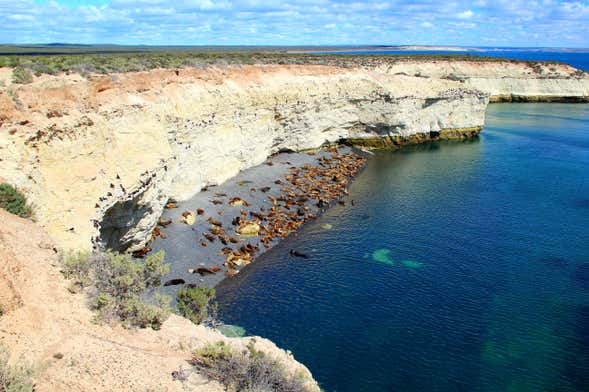 Voltaremos ao veículo e, enquanto contornamos a costa, poderemos apreciar a Praia Paraná, que abriga os restos do navio naufragado Les Folies. Nosso destino será a Reserva Faunística Punta Loma, onde veremos a grande estrela da excursão: os lobos-marinhos. Ao contrário de outras regiões da Península Valdés aonde os lobos vão para se reproduzir ou para passar o inverno, essa reserva é habitada pelos lobos durante todo o ano.