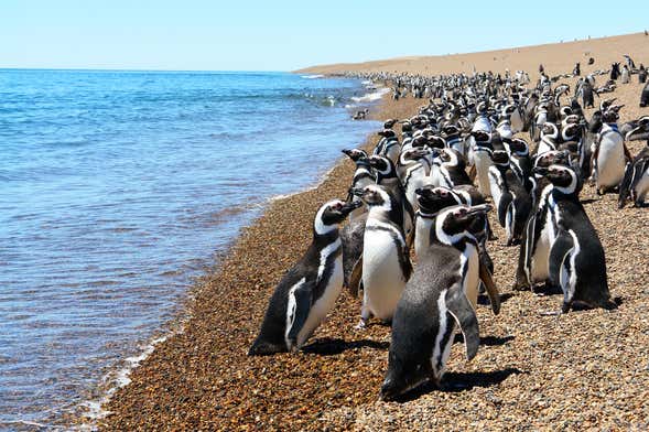 Em seguida, iremos ao rancho San Lorenzo, famoso por sua colônia de pinguins-de-magalhães. Quais são os costumes desses animais? O que comem? Faremos uma caminhada de 1,5 quilômetro pela colônia de pinguins da Estancia San Lorenzo acompanhados por um guia naturalista, que nos explicará as principais características dos pinguins-de-magalhães, muito abundantes nessa região da Argentina devido às condições climáticas especiais. Após o passeio pela rota de pinguins, você terá uma hora livre para almoçar na estância.