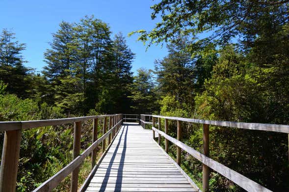 A seguir, iremos ao monumento natural Lahuen Ñadi. Percorreremos esse belo bosque de alerces admirando sua flora e avistando diferentes aves como o pica-pau-de-magalhães ou o hued-hued, além de mamíferos como o pudu ou a raposa-cinzenta. Você não conseguirá parar de tirar fotos!