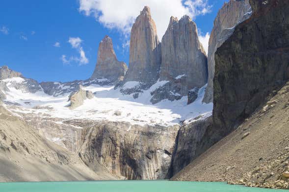 O aumento da dificuldade da rota terá sua recompensa, porque pouco depois de uma hora de trilha, chegaremos a um dos lagos cristalinos do parque. Junto ao lago você desfrutará das maravilhosas vistas dos picos de granito Central, Monzino e Dagostini, também conhecidos como as Torres del Paine.
