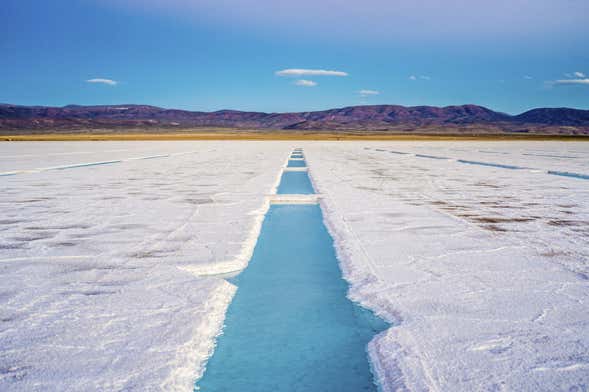 Chegaremos a 4150 metros sobre o nível do mar, ponto onde se localizam as Salinas Grandes. Você sabia que é o terceiro maior salar da América do Sul? Essa enorme planície cria uma paisagem belíssima graças ao contraste do céu azul com o branco do sal.