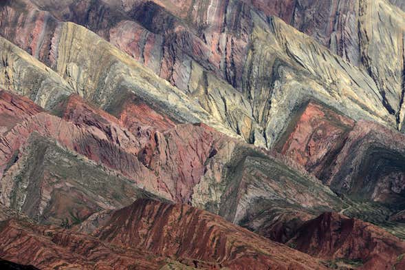 A seguinte parada será no centro histórico colonial de Humahuaca. Nesse ponto, depois de uma pausa para o almoço, subiremos a bordo de um veículo 4x4 para irmos à serra Serranía de Hornocal, que se destaca pela riqueza dos seus minerais. São mais de 14 cores diferentes!
