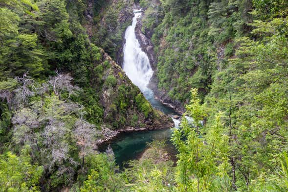Depois de uma breve caminhanda, iremos à cascata Chachín, uma das quedas d'água mais importantes da zona, conhecida como os balcões do rio Lácar. Essa cascata de 30 metros de altura em plena selva de Valdivian será o final perfeito de um passeio inesquecível.