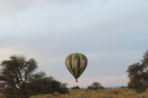 Depois de tomar um delicioso café da manhã, começaremos o passeio de balão enquanto você contempla o amanhecer sobre o deserto do Atacama, o mais árido do mundo. Nessa zona do norte do Chile, você desfrutará de magníficas panorâmicas da cordilheira dos Andes. Você vai ver que do balão os vulcões são ainda mais belos!