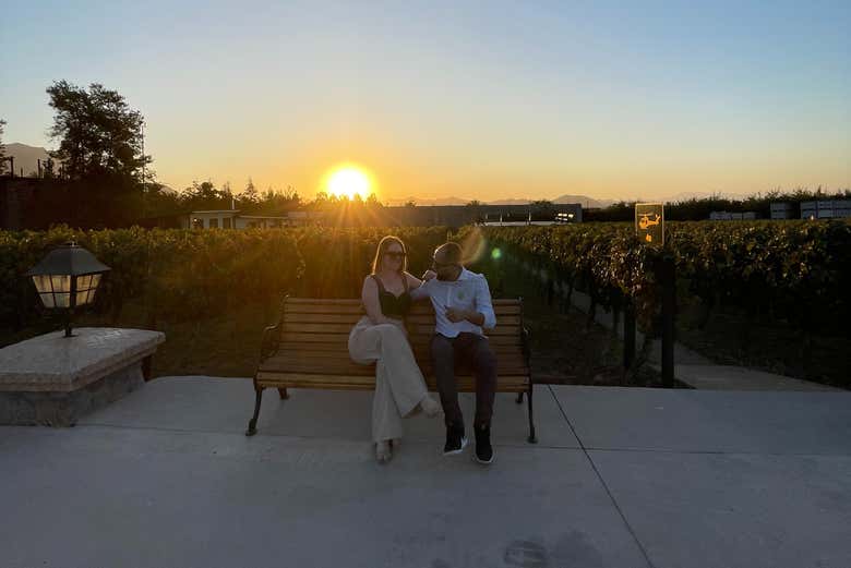 Continuaremos a visita adentrando nas adegas da vinícola, onde você conhecerá mais sobre o processo de elaboração dos seus vinhos e realizará outra degustação. Depois, iremos a um ponto estratégico para ver o pôr do sol sobre as vinhas e as montanhas da região, desfrutando de outra degustação de vinho enquanto o sol se põe. Não se esqueça de registrar o momento!
