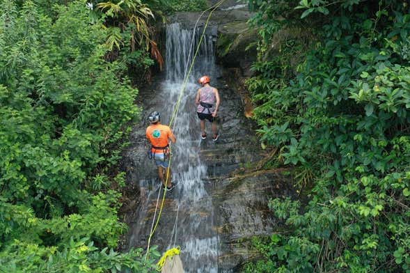 Depois da parte teórica, é hora de liberar muita adrenalina! Rodeados pelo verde da Mata Atlântica e pelo azul do oceano, faremos rapel em uma cachoeira de 96 metros de altura durante 40 minutos! Você vai escalar a parede rochosa e sentir a água da cascata durante essa aventura.