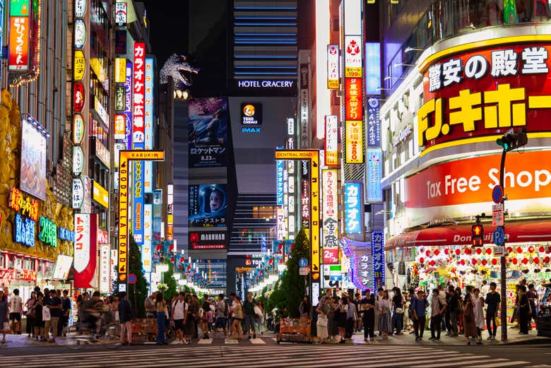 Em seguida, iremos para a área comercial, onde as luzes de neon o farão mergulhar na vida noturna de Tóquio. Lá, falaremos sobre a cultura urbana, os famosos centro comerciais e os restaurantes que ficam abertos até o amanhecer. Shinjuku está viva 24 horas por dia!