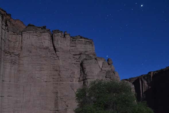 Durante esse passeio de baixa dificuldade, no qual alcançaremos uma altitude máxima de 1.300 metros, também percorreremos uma parte do cânion de Talampaya. Desse espetacular desfiladeiro, contemplaremos o céu noturno. A ausência de poluição luminosa nessa parte da Argentina nos permitirá observar com total nitidez as estrelas e os demais corpos celestes que brilham no firmamento.